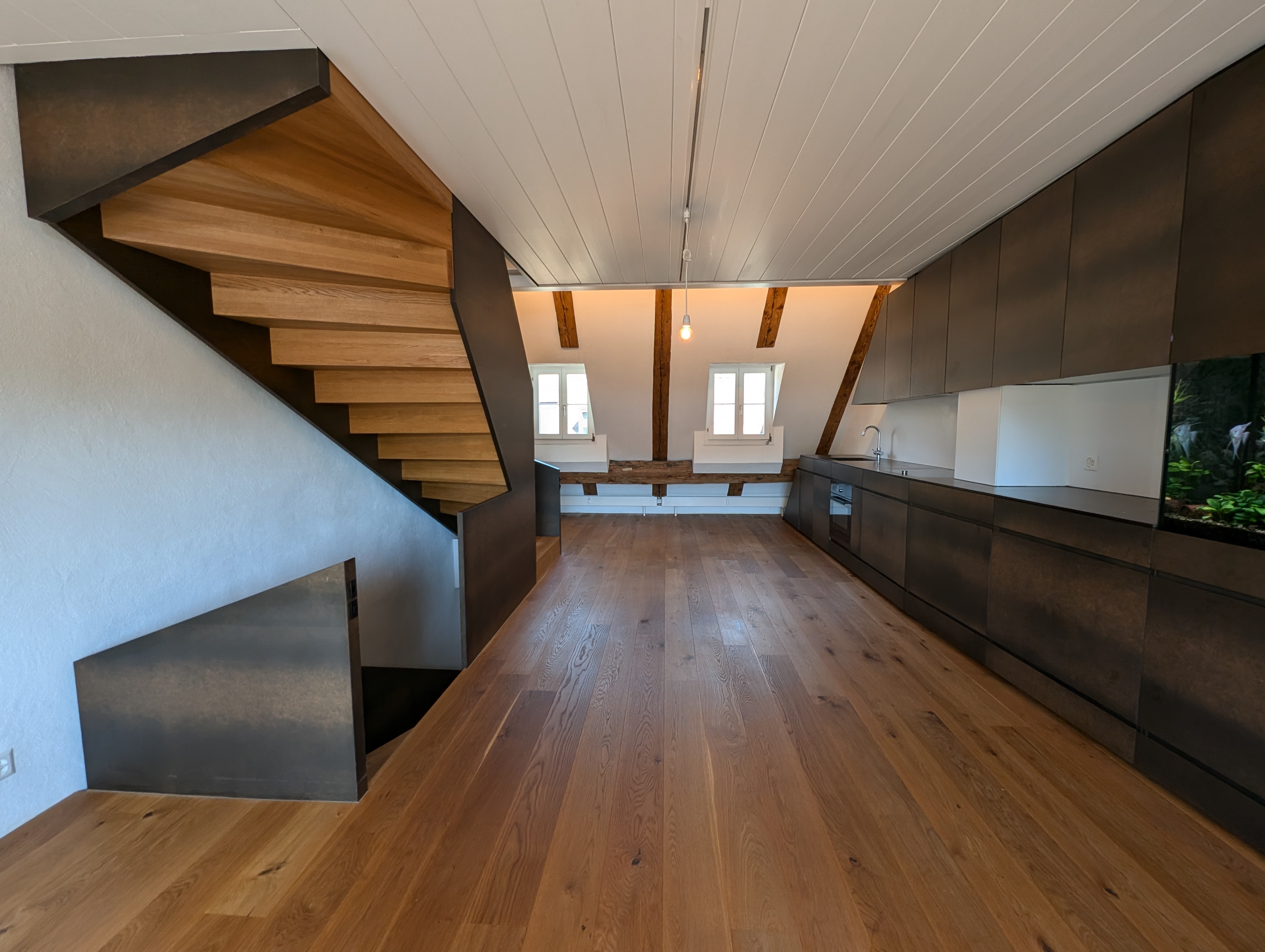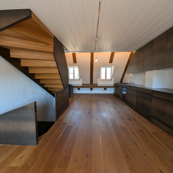 Im Herzen der Altstadt von Liestal mieten wir eine wunderschöne 3,5-Zimmer-Maisonette-Wohnung auf drei Etagen (4. – 6. Stock) in der Rathausstraße 68.