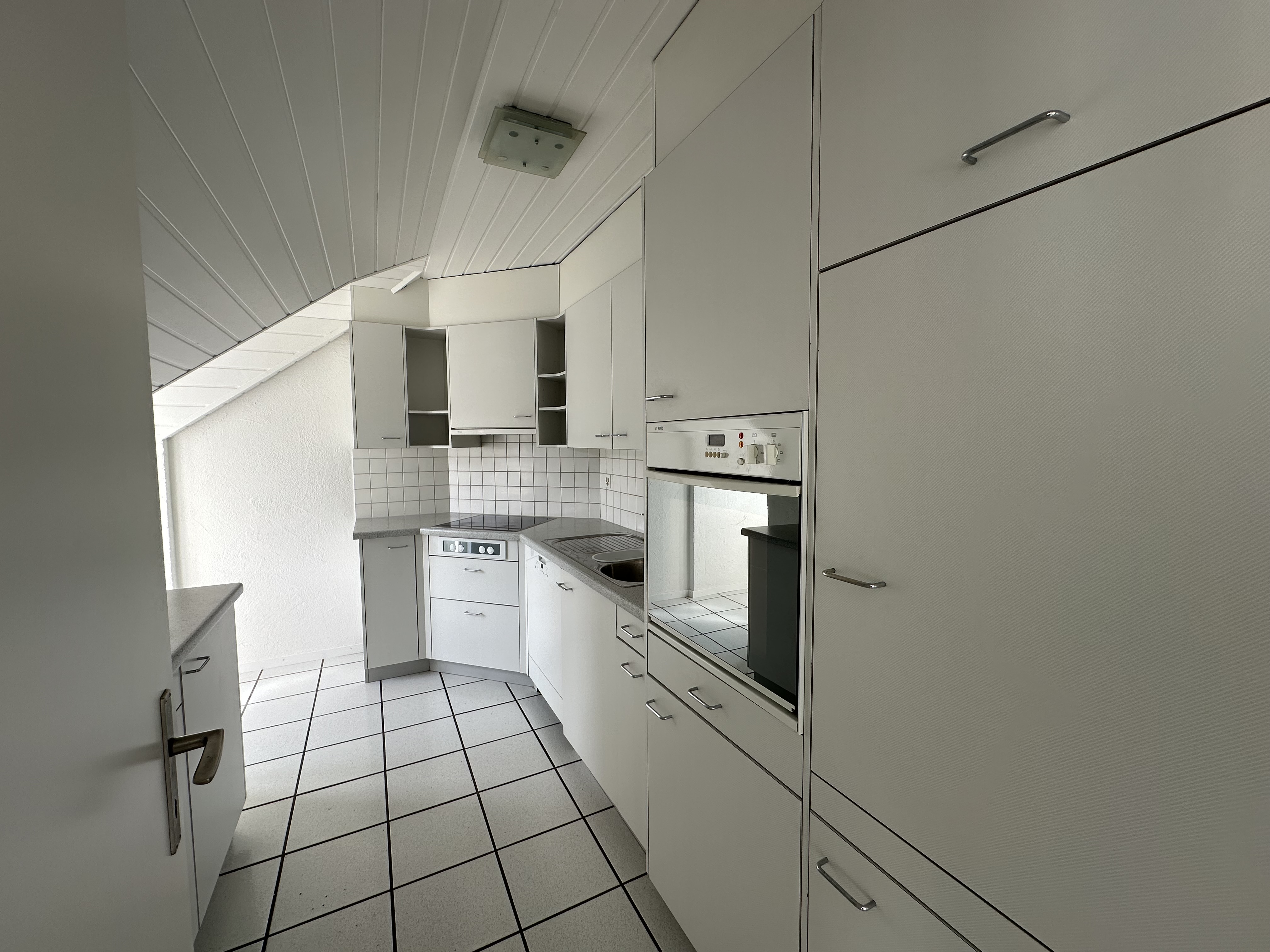Neben dem grossen und von drei Seiten belichteten Wohn-Essbereich mit Zugang auf den Balkon mit Südausrichtung, verfügt die Wohnung über eine abgeschlossene Küche mit zeitgemässer Ausstattung, vier Schlafzimmern, einem geräumigen Badezimmer mit Doppellavabo, Toilette und Badewanne sowie einem separaten Dusch-Bad mit Lavabo, Toilette und Dusche. Jedes Zimmer verfügt über einen praktischen Stauraum im Kniestock. Ebenso befindet sich im Dachraum, welcher über eine interne Auszugstreppe in der Wohnung zugänglich ist, ein zusätzlicher ausgebauter Estrich, der Platz für weiteren Stauraum bietet.